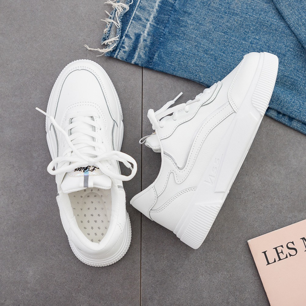 White Shoes Women Spring New Thick-Soled Increased Student Board Shoes Platform Shoes